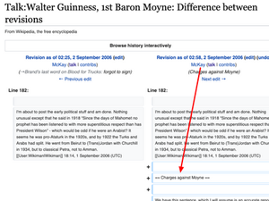 In the Walter Guinness, 1st Baron Moyne discussion page, McKay started a new thread, “Charges against Moyne.”
