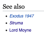 In this edit, an editor by the username Amoruso, added in the “See also” section, the name and link to the article, Lord Moyne.